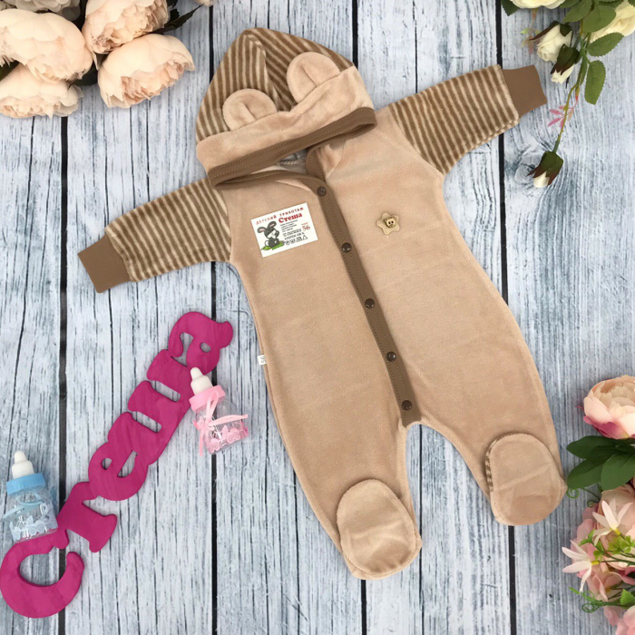 Теги: Купить велюровый комбинезон оптом от производителя. 225. Комбинезон с шапкой, 80% хлопок велюр, 20% ПЭ 56,62,68,74 цена,отзывы официальный сайт "Стеша Зеленокумск"