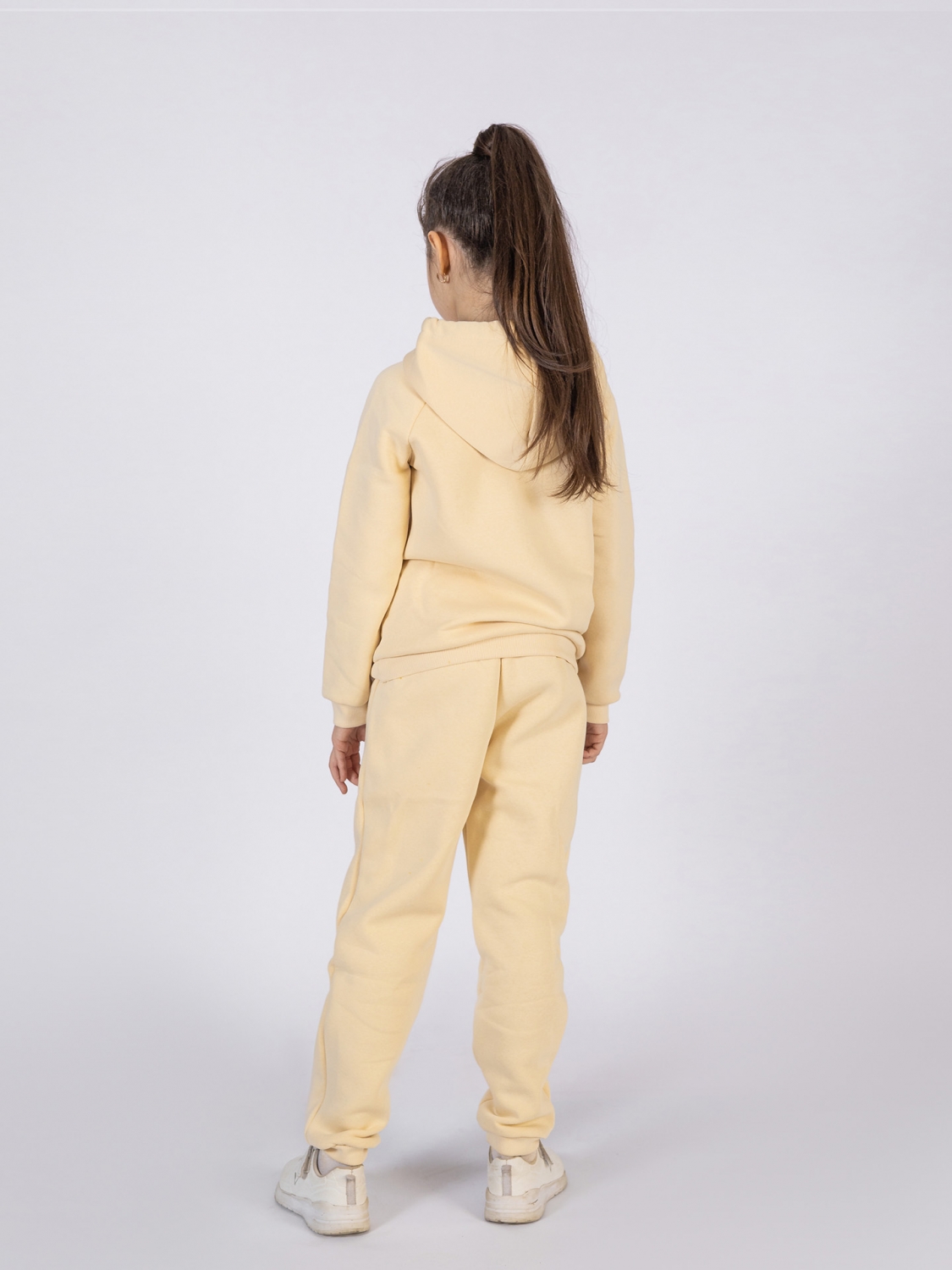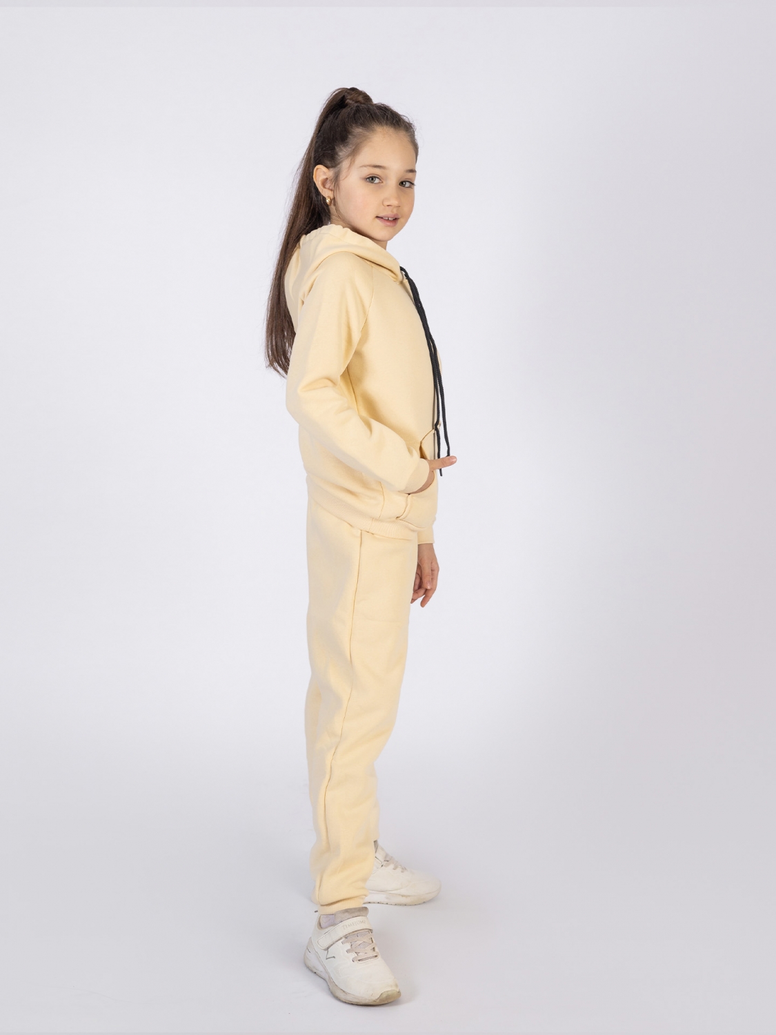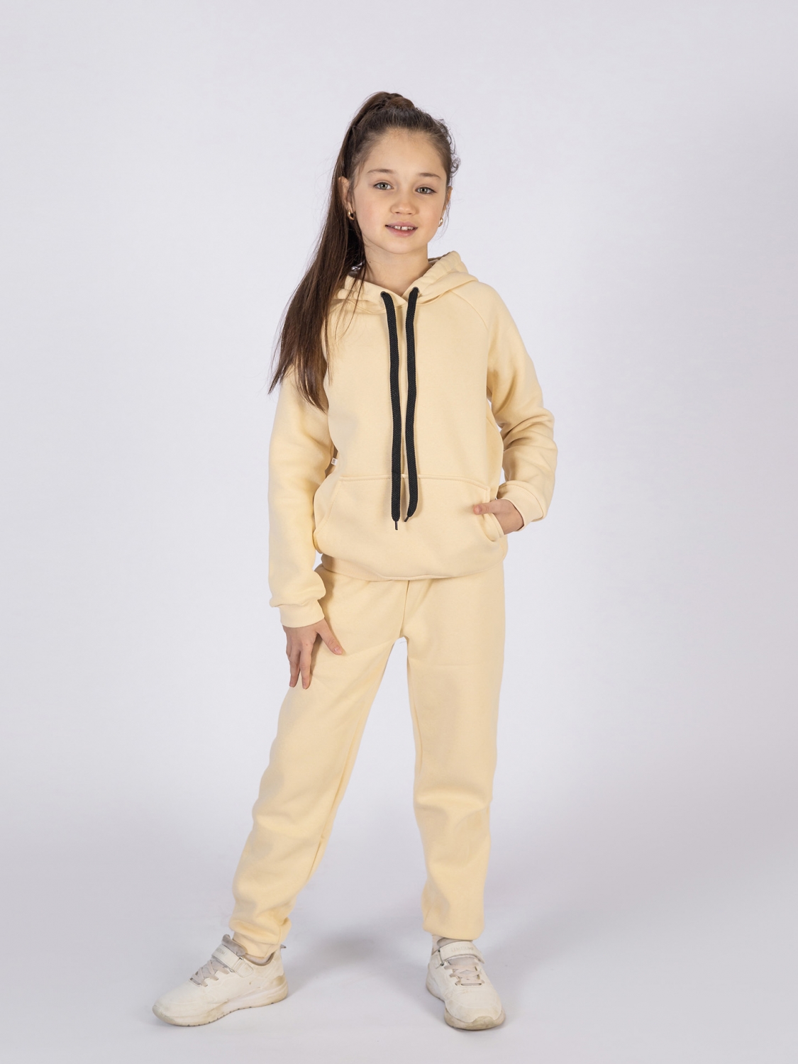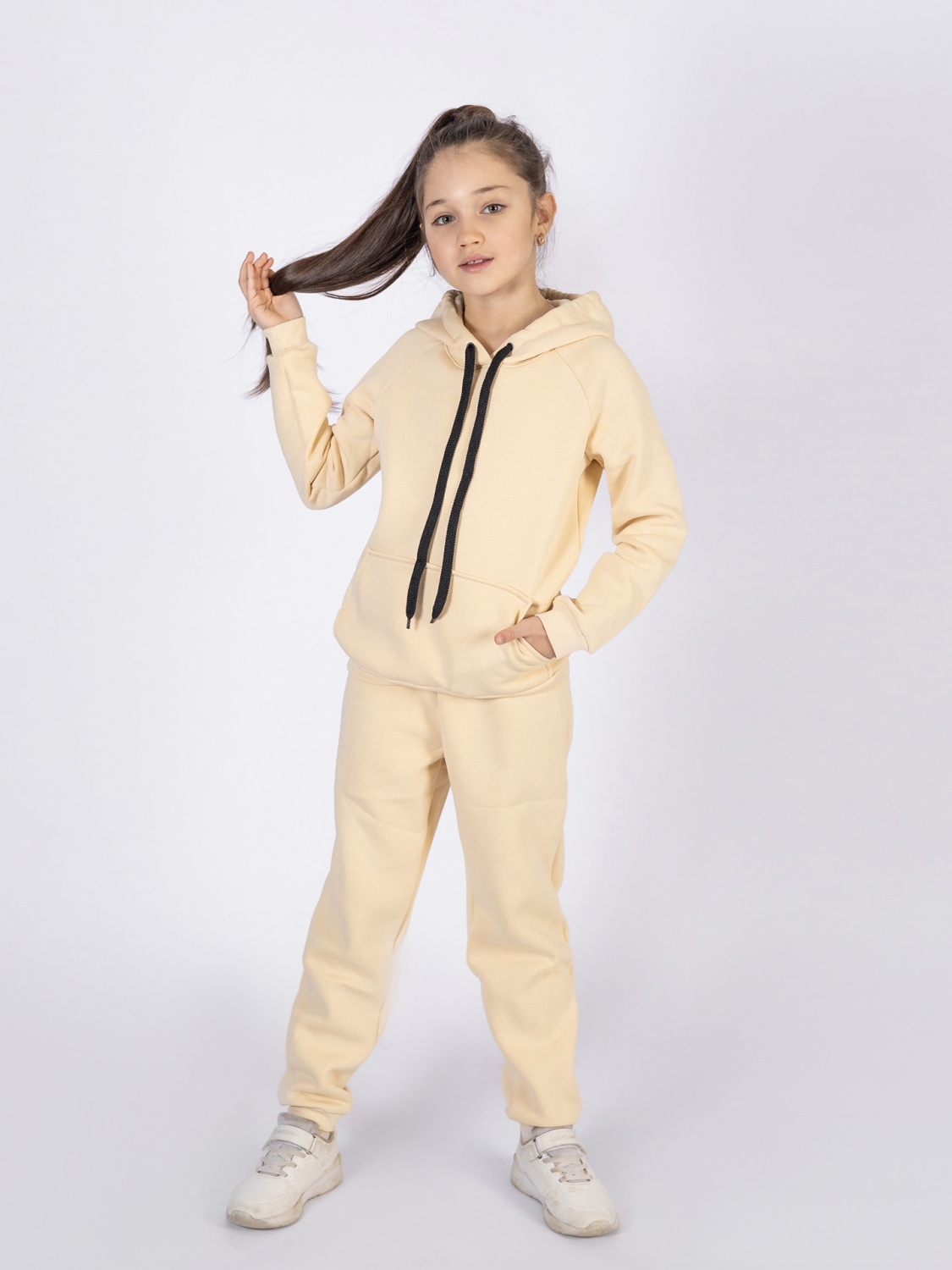 Купить оптом 296-СЛ. Свитшот с капюшоном + Штаны, хлопок 65%, 35% ПЭ, 3-х нитка (начес) сливочный 122,128,134,140 в Зеленокумске