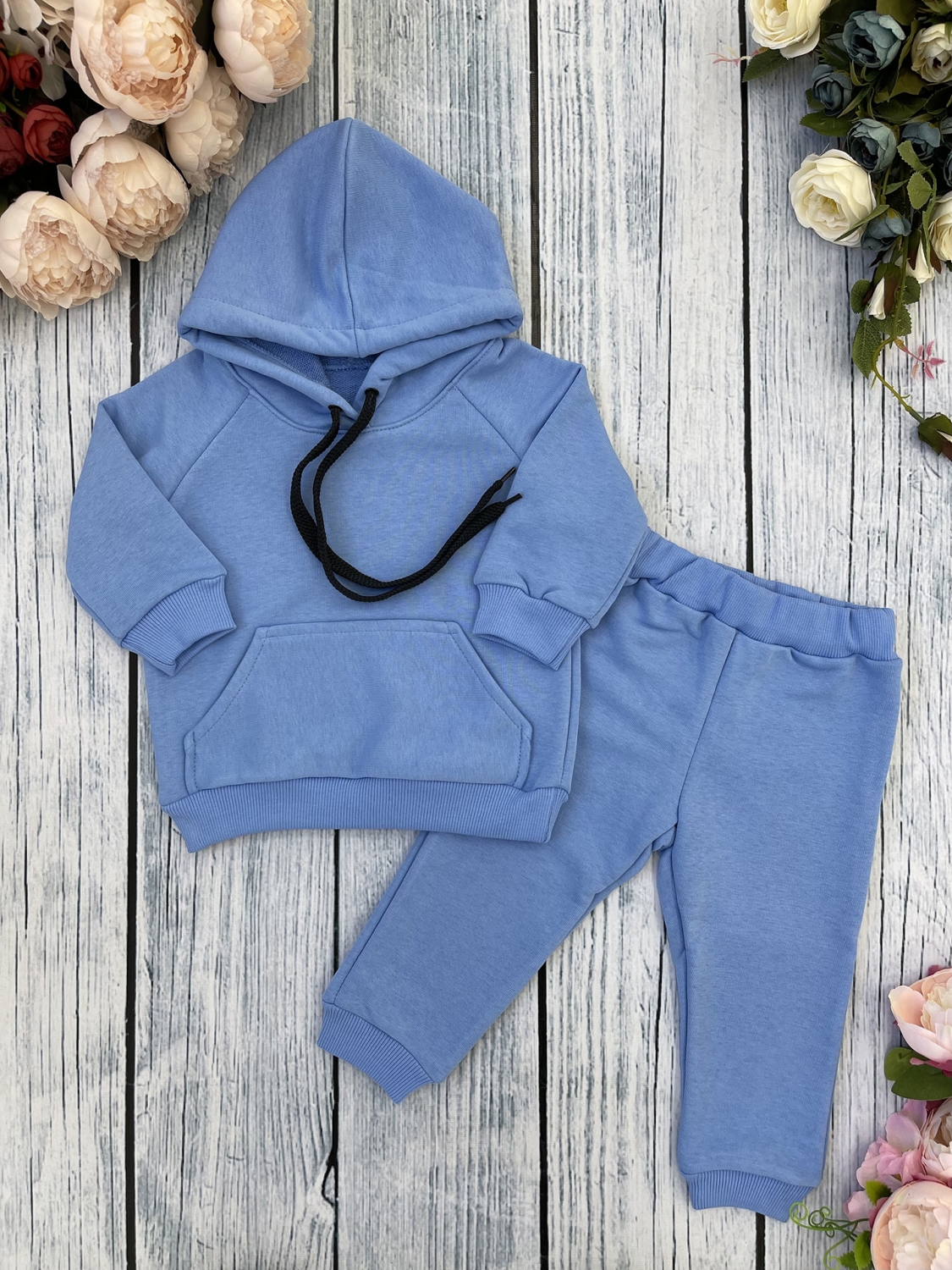 Купить оптом 311-Г. Свитшот с капюшоном + Штаны, хлопок 65%, 35% ПЭ, 3-х нитка ( без начеса) голубой 122,128,134,140 в Зеленокумске